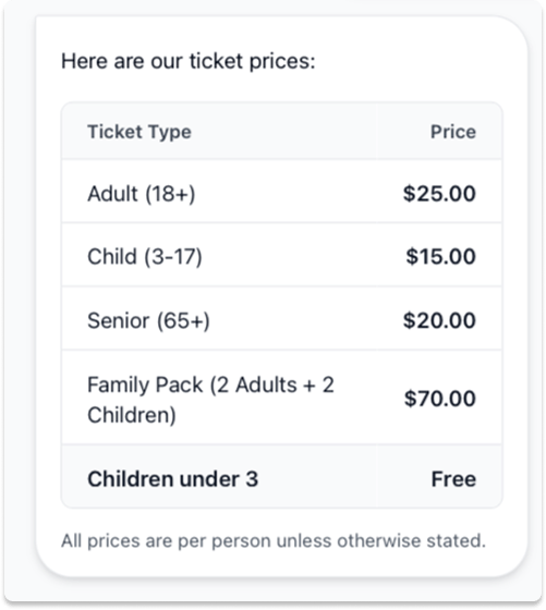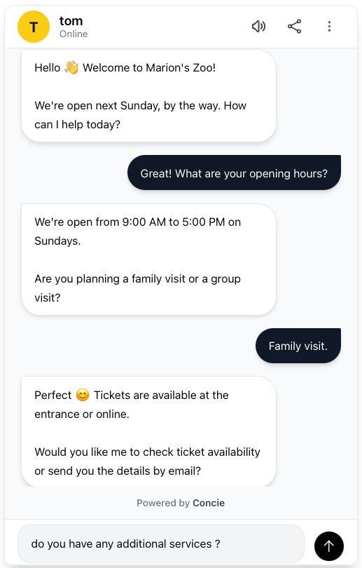 Whether visitors are looking for information, pricing, availability, or next steps, the assistant handles the conversation naturally — without forcing forms or rigid flows.